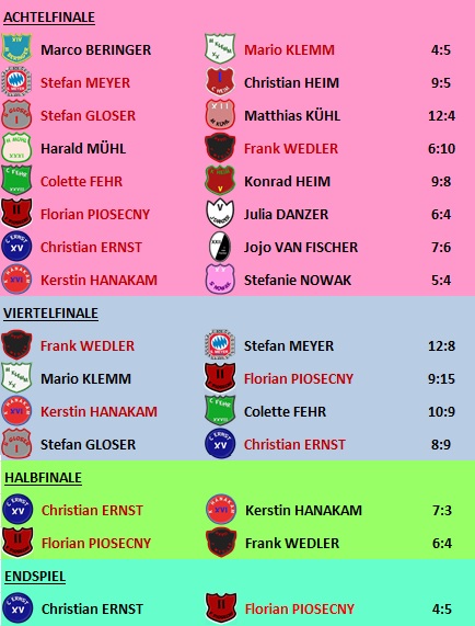 Sieg (100,00) - Finale (75,00) - Halbfinale (50,00) - Viertelfinale (25,00) - Achtelfinale (10,00) - 1. Runde (5,00)