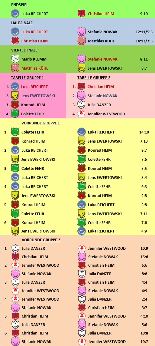 Sieg (65,00) - Finale (40,00) - Halbfinale (25,00) - Viertelfinale (10,00) - Vorrunden-3. (7,50) - Vorrunden-4. (00,00)