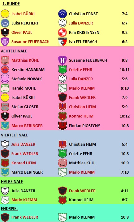 Sieg (100,00) - Finale (75,00) - Halbfinale (50,00) - Viertelfinale (25,00) - Achtelfinale (10,00) - 1. Runde (5,00)