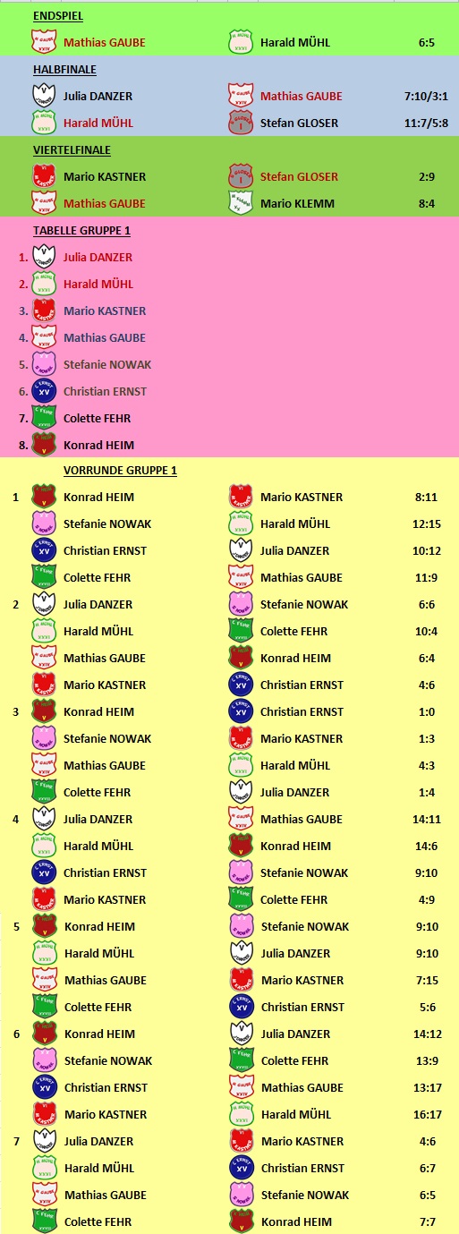 Sieg (65,00) - Finale (40,00) - Halbfinale (25,00) - Viertelfinale (10,00) - Vorrunden-3. (7,50) - Vorrunden-4. (00,00)